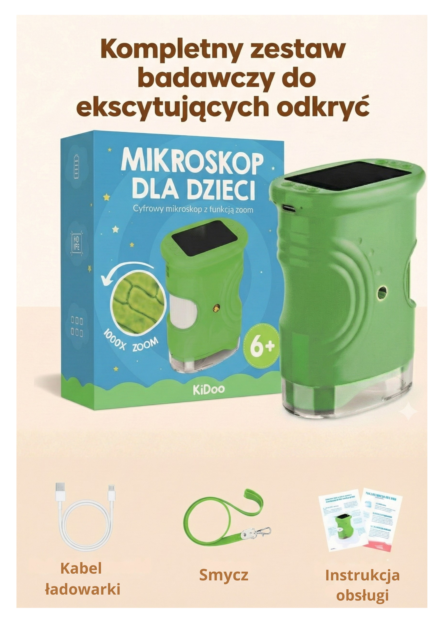 Mikroskop oferuje bardzo ostry obraz, łatwą obsługę oraz solidną, kompaktową konstrukcję. Nie wymaga aplikacji ani telefonu — wystarczy włączyć i zacząć badać. Idealny prezent, który rozwija ciekawość i uczy poprzez zabawę.